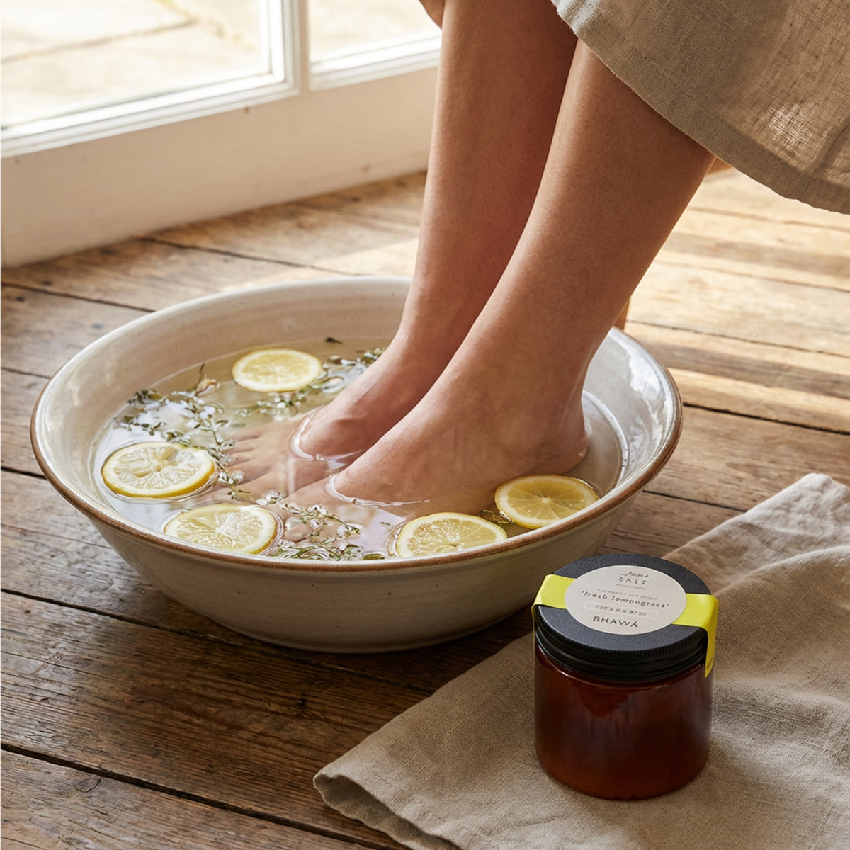 BHAWÁ 足部海鹽磨砂的清新呵護,寵愛您的雙足。天然配方結合有機精油,融入振奮人心的香茅芳香,讓您的自我護理瞬間升級為水療般的享受,令肌膚柔滑、煥然一新、清爽舒暢。